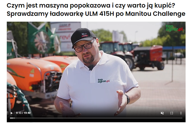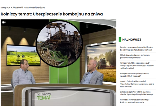 Emisja na portalu www.topagrar.pl lub www.tygodnik-rolniczy.pl plus kanał YB i FB wybranego portalu